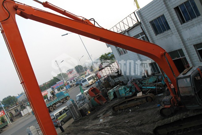 加長臂:加長臂是我們最常見,使用時間更早的大小臂加長臂,不需要伸縮缸控制。它通過大臂、小臂同時加長,配帶小挖斗,擴大機械的工作范圍。