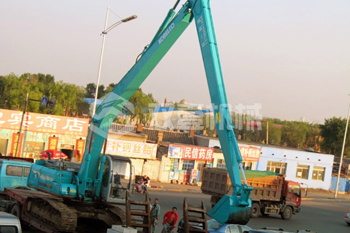 加長臂:加長臂是我們最常見,使用時(shí)間更早的大小臂加長臂,不需要伸縮缸控制。它通過大臂、小臂同時(shí)加長,配帶小挖斗,擴(kuò)大機(jī)械的工作范圍。